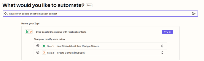 The final step is to set up Zapier to automatically transfer the new contacts from the Google Sheets document into your CRM system. Example with Hubspot