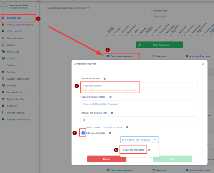 - Click on the LinkedIn Tool (1) in the menu on the left side.