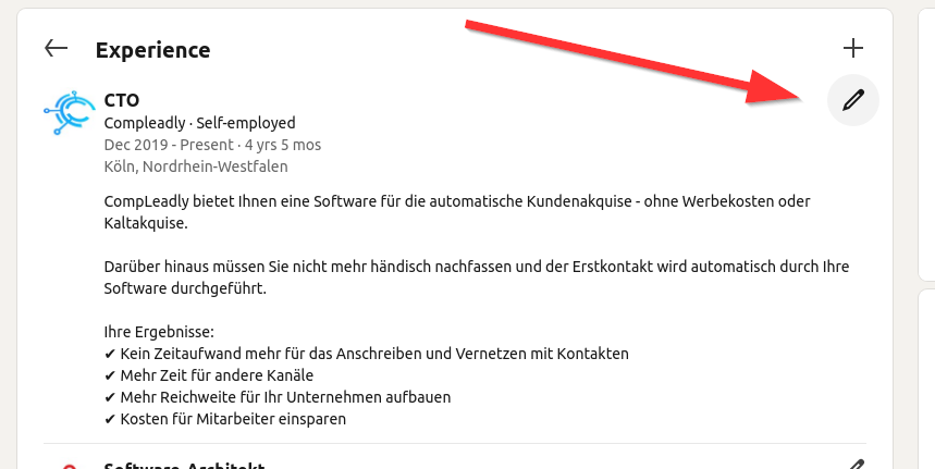 Adding a new position, such as a new service or product under the existing job title, can help to ensure that these innovations appear prominently in the notifications of contacts. It not only updates the current position but also makes the profile more active and interesting for the network.