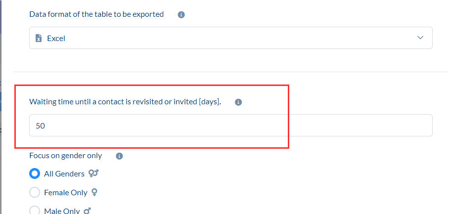 Waiting time until a contact is revisited or invited [days].