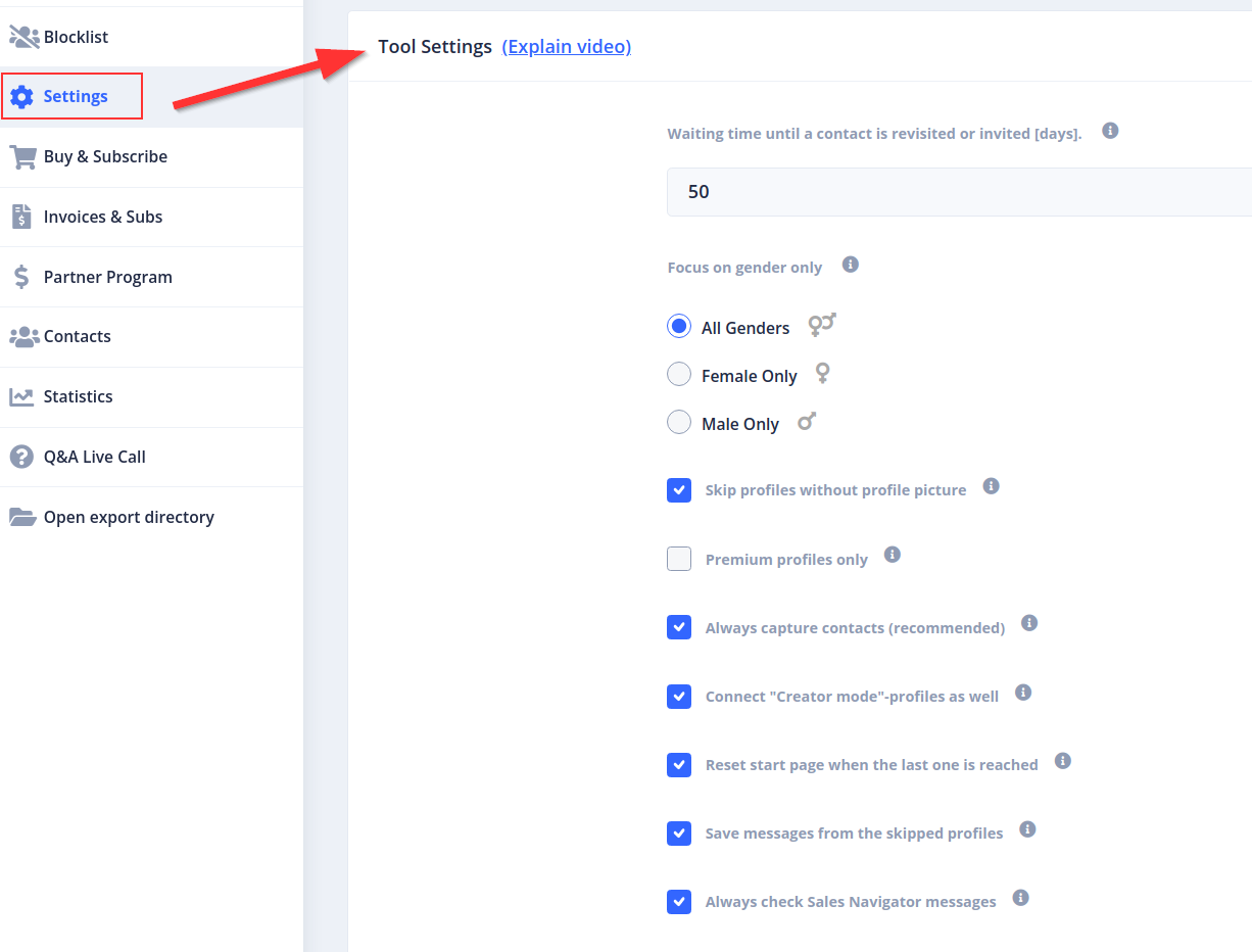 CompLeadly opens the LinkedIn or Sales Navigator search and works from top to bottom. There is no prioritization, but CompLeadly skips e.g. contacts without profile picture, which you can also set in the settings menu on the left.