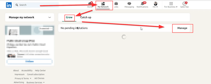 In the network area, you should see an option called "Grow." Click on it and then select "See all"/"Manage" to get an overview of all the invitations you have sent. -